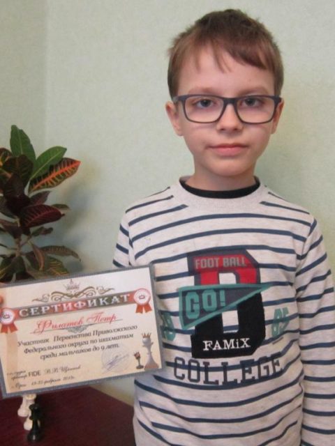 С 19 по 25 февраля в г. Орск прошло Первенство Приволжского Федерального округа по шахматам среди мальчиков до 9 лет. Филатов Петр учащийся д/о «Шахматы» ПДО Маскинский А.В. занял 11 место, всего в соревнованиях приняли участие 57 ребят из разных областей.