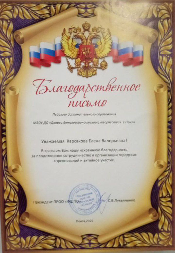 В 2023 г. присвоена 2 квалификационная категория спортивного судьи