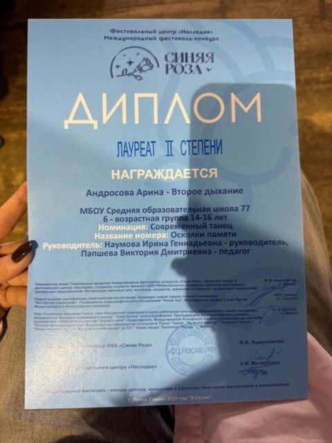 Информация о результатах участия учащихся в конкурсах, соревнованиях и других мероприятиях, имеющих официальный статус: победители, призёры, участники (прикрепляются сканы дипломов, грамот или сертификаты об участии)