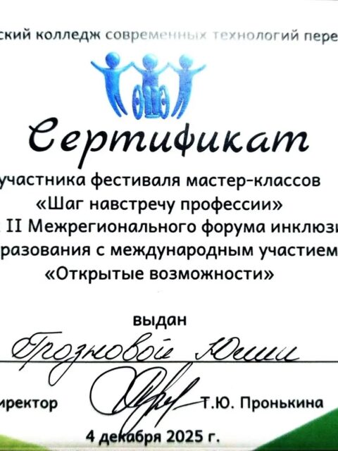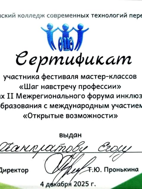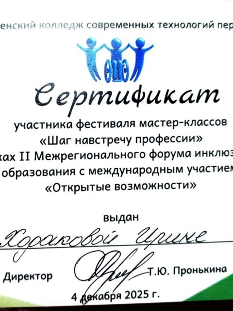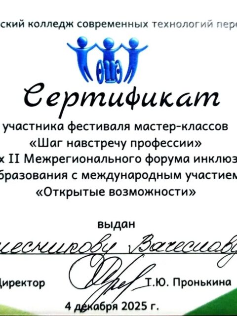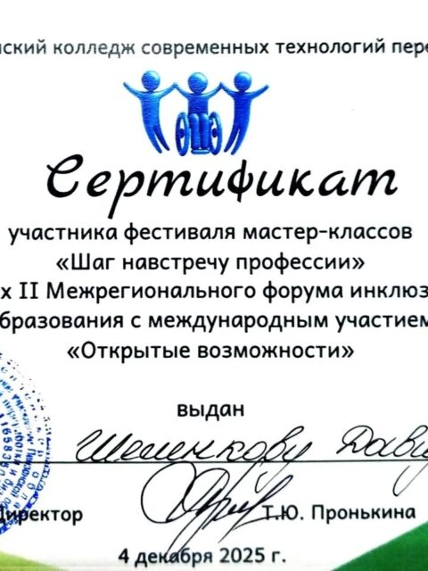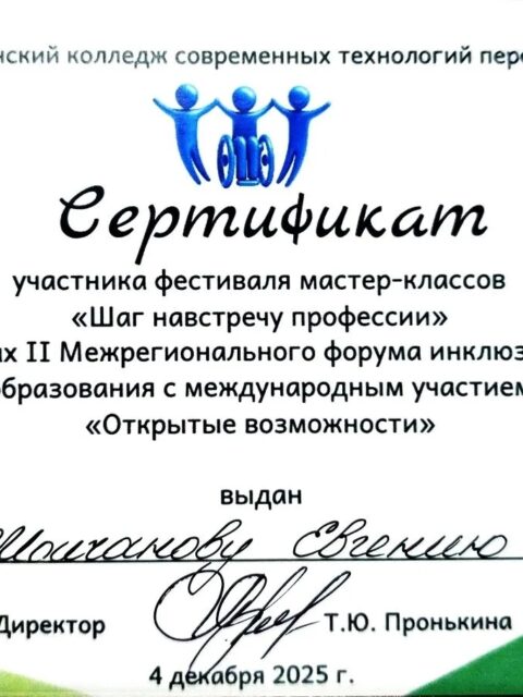 Информация о прохождении курсов повышения квалификации, участии в обучающих семинарах и мастер-классах (прикрепляется скан удостоверения, свидетельства, сертификат участника).