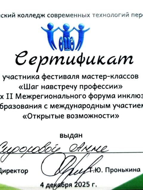 2006г., ИПКиПРО по специальности «Логопедия», учитель-логопед;