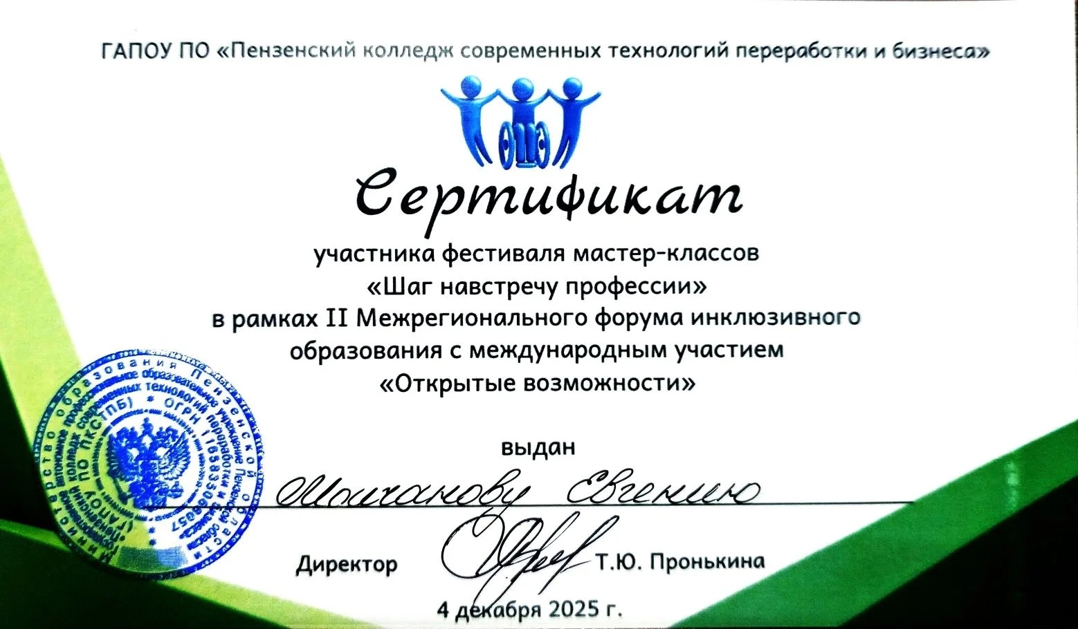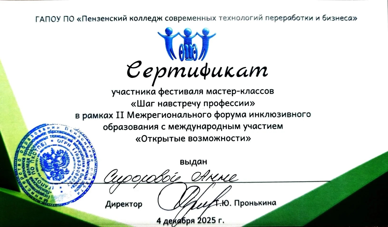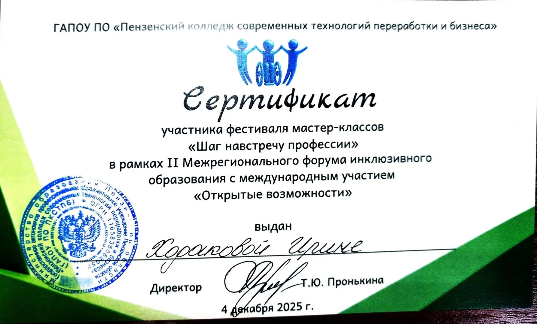 Информация о прохождении курсов повышения квалификации, участии в обучающих семинарах и мастер-классах (прикрепляется скан удостоверения, свидетельства, сертификат участника).