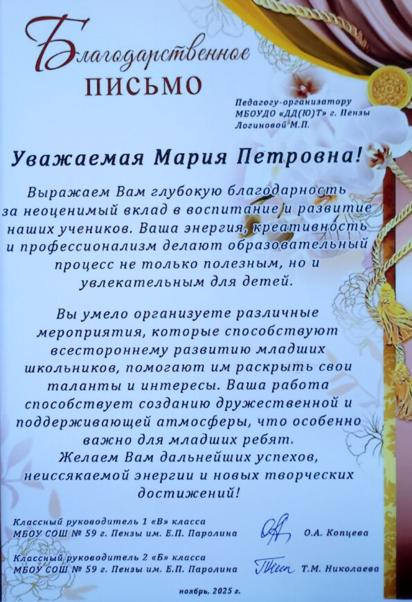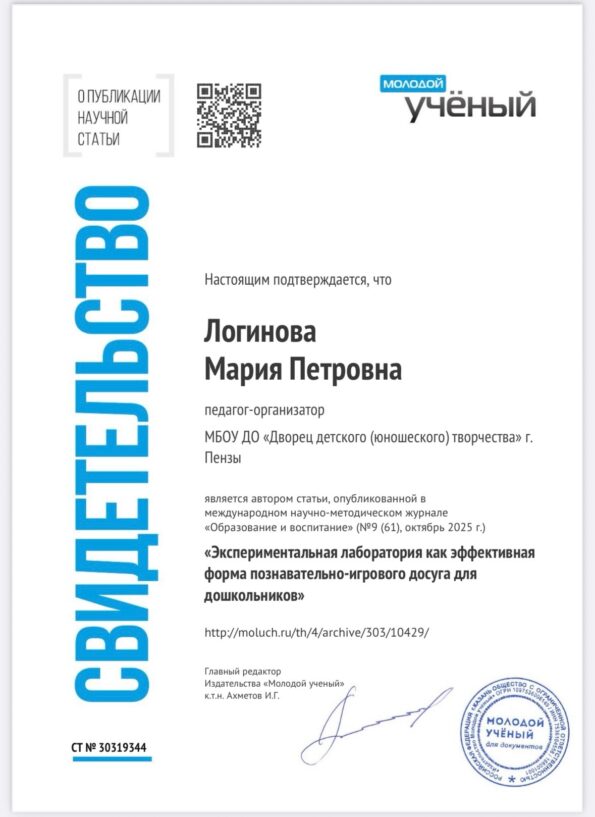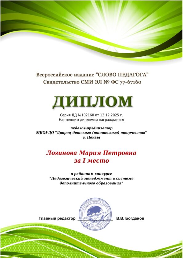 Место работы: МБОУДО «Дворец детского (юношеского) творчества» г. Пензы