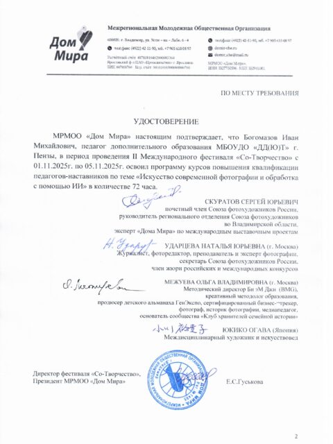 Информация о прохождении курсов повышения квалификации, участии в обучающих семинарах и мастер-классах (прикрепляется скан удостоверения, свидетельства, сертификат участника).