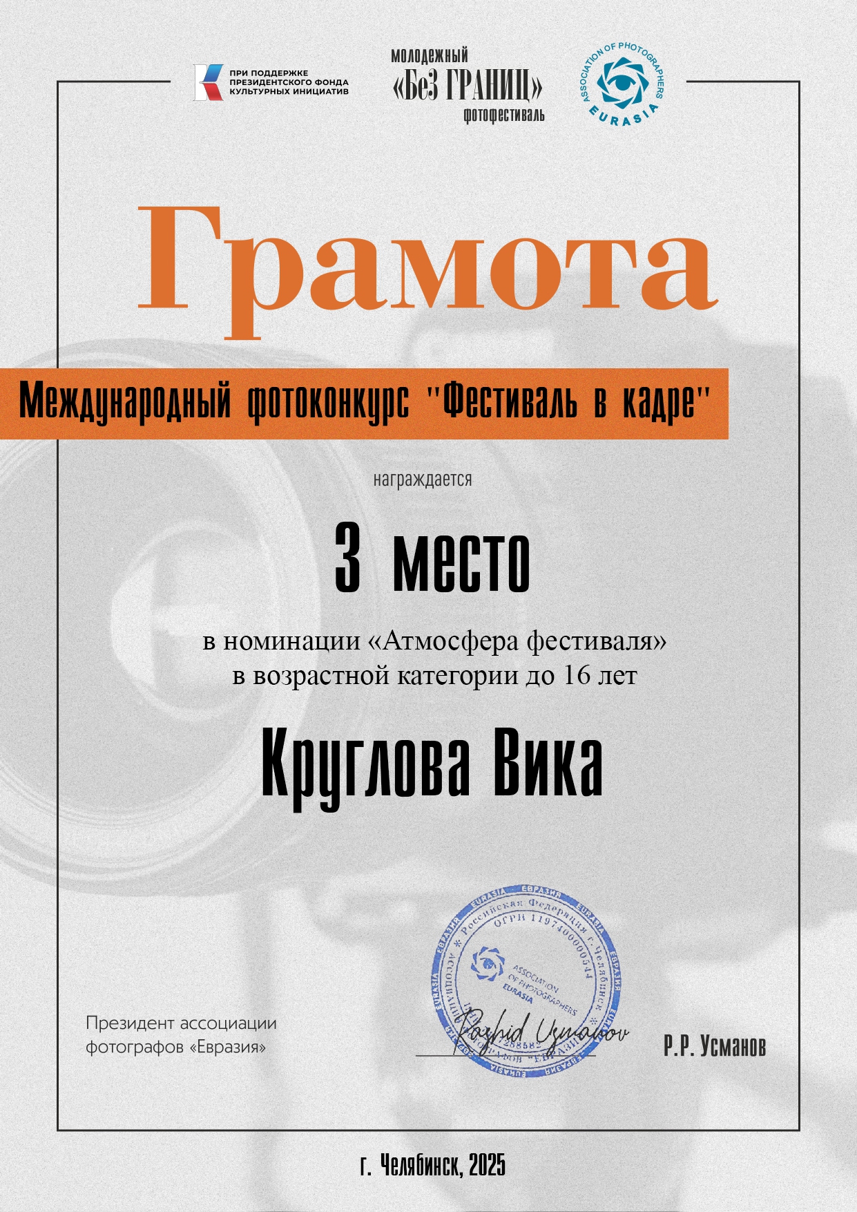 Информация о результативности участия педагога в профессиональных конкурсах, имеющих официальный статус (указываются название конкурса, дата проведения, результат участия, прикрепляется скан диплома). Кроме коммерческих интернет конкурсов.