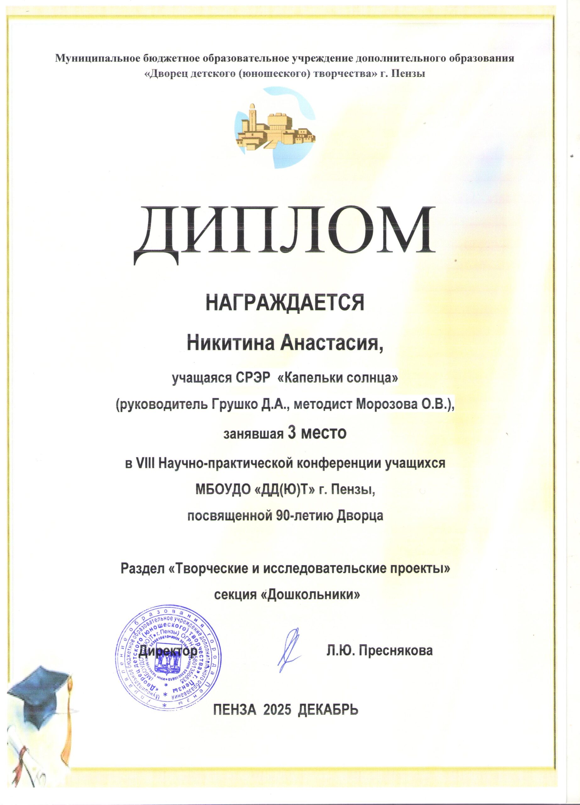 Морозова Ольга Владимировна — методист художественного отдела, объединений «Вокал», «Цирк», «Декор» МБОУДО «ДД(Ю)Т» г. Пензы