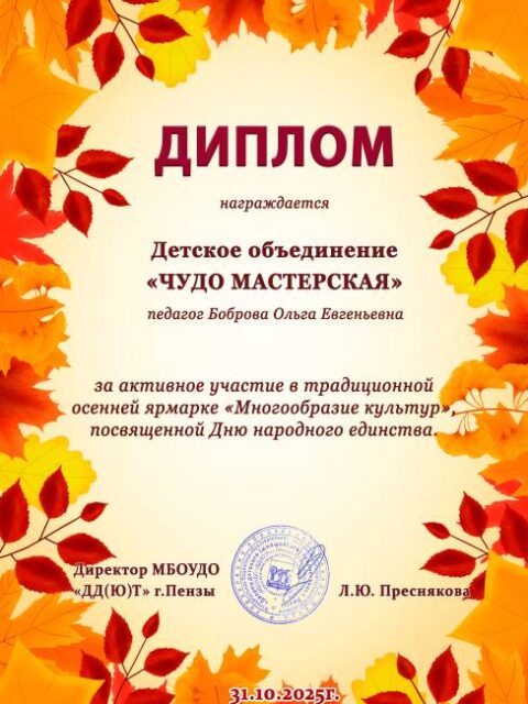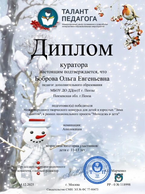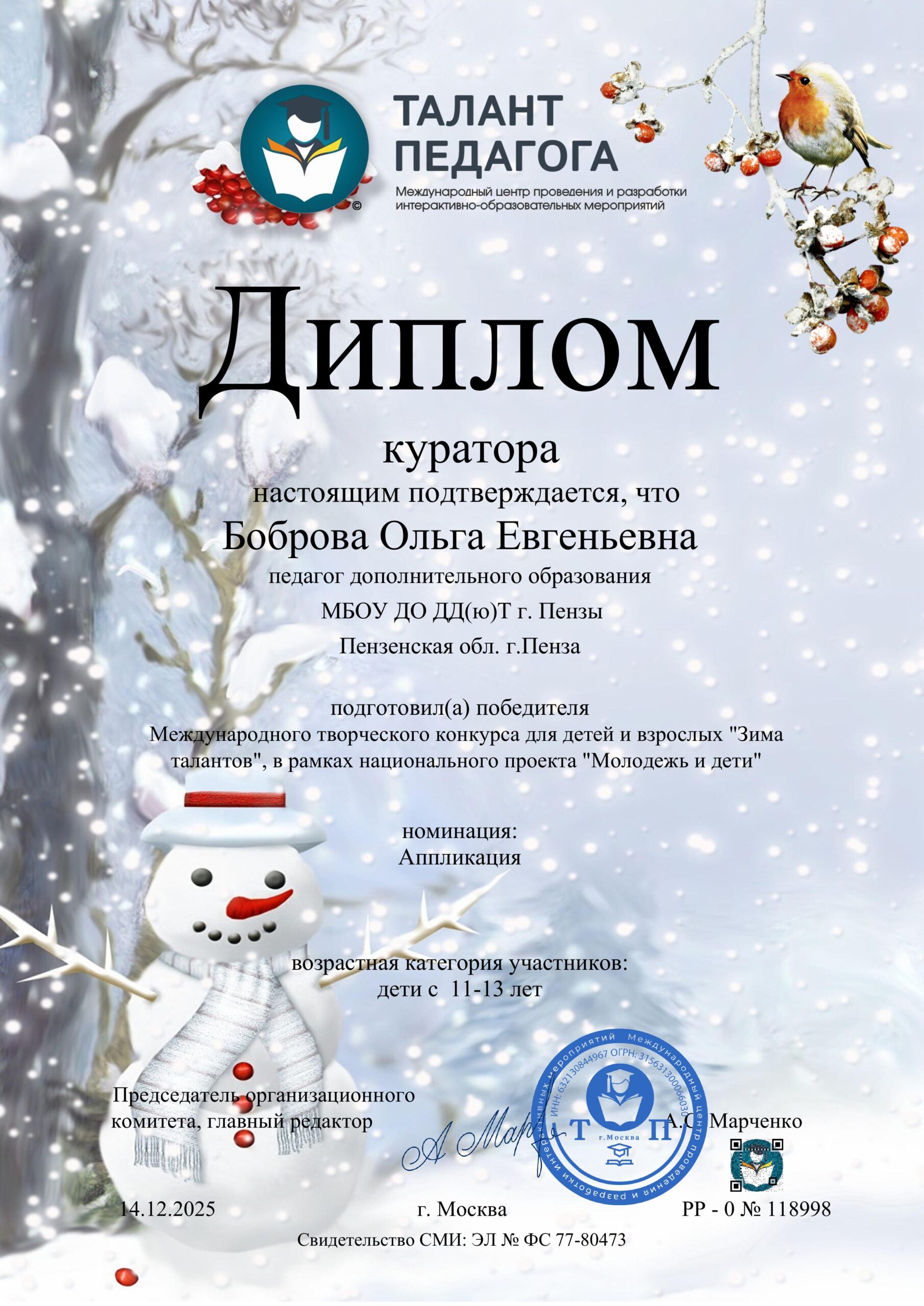 Боброва Ольга Евгеньевна, педагог дополнительного образования 1 категории. Трудовой стаж 38 лет, педагогический стаж 7 лет.