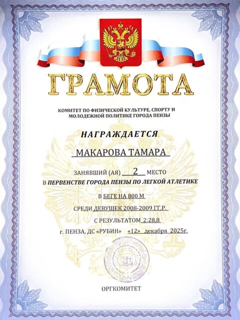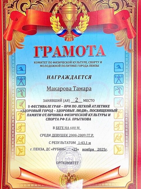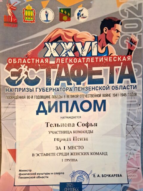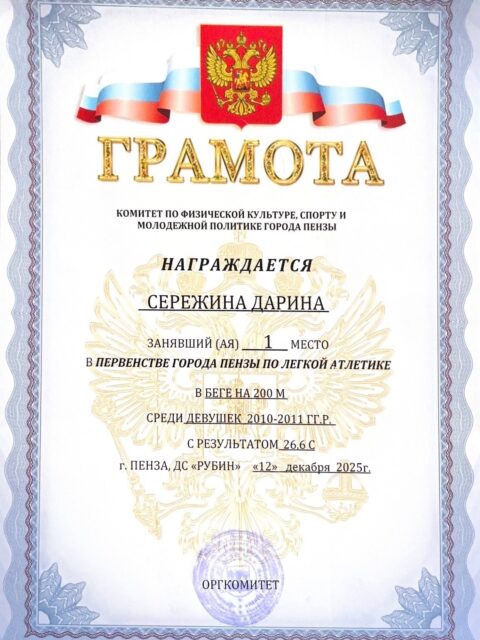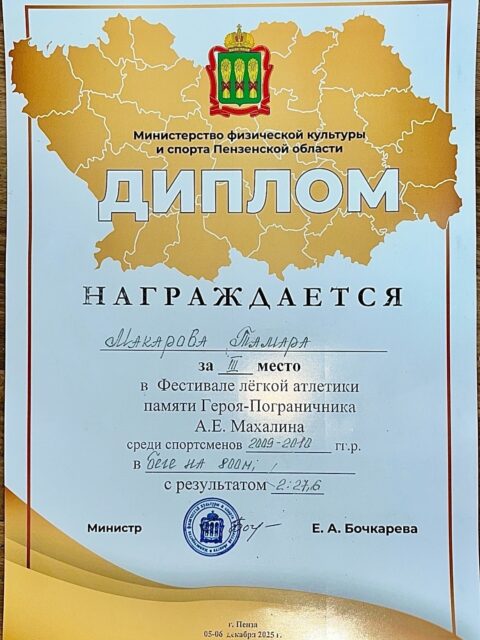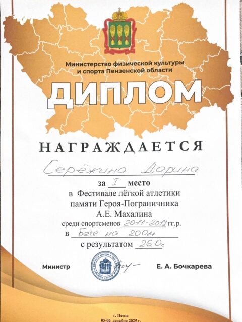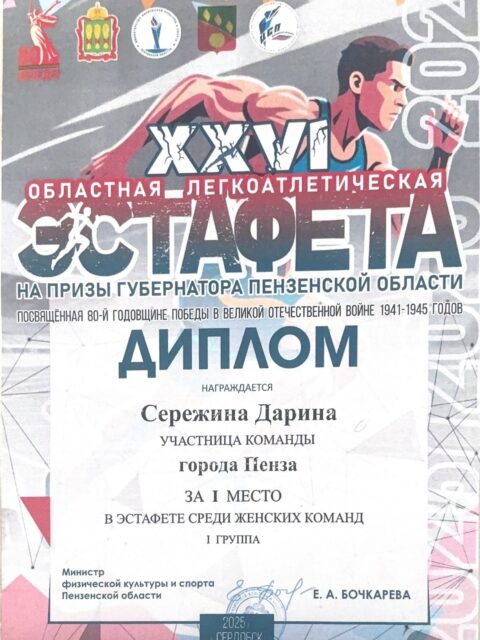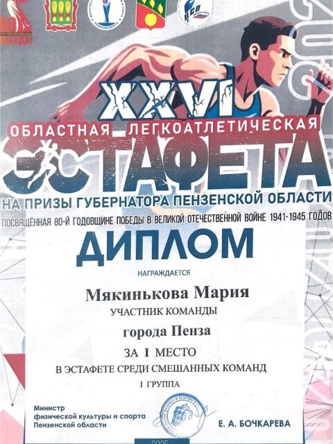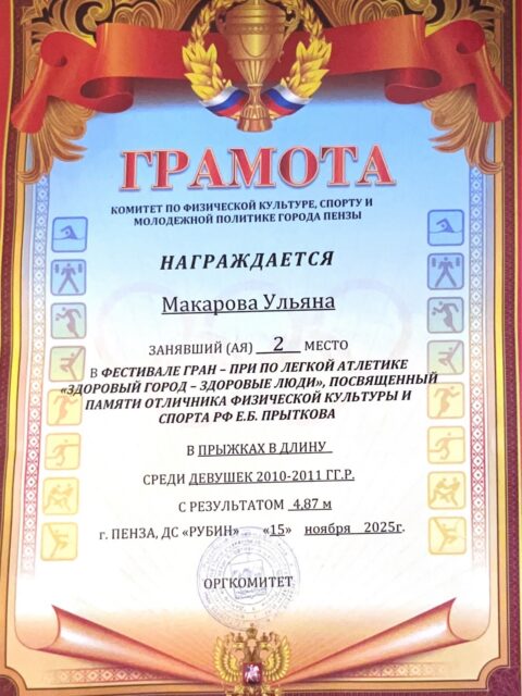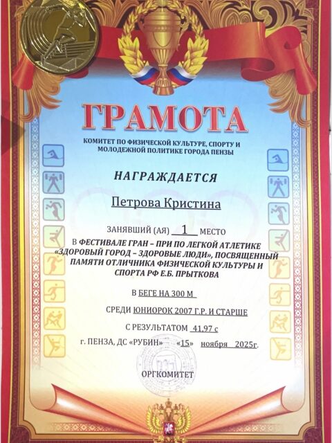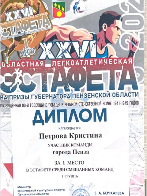 4 девочки и 1 мальчик вошли в состав сборной Пензенской области по легкой атлетике и выступали в составе сборной области на Всероссийских соревнованиях.
