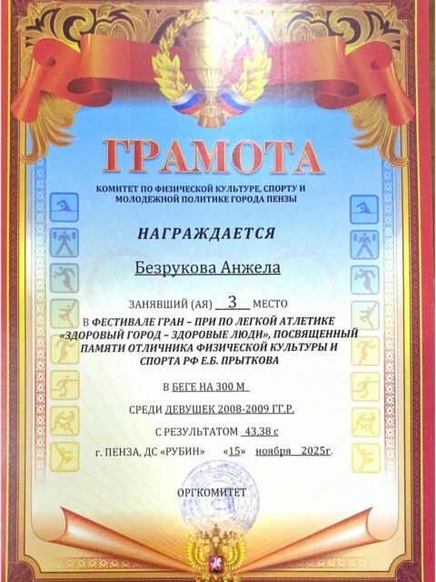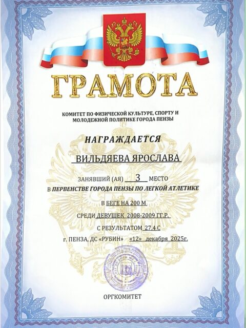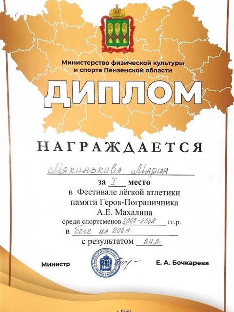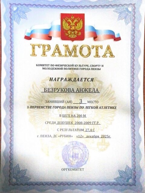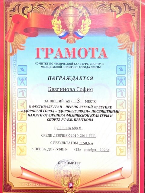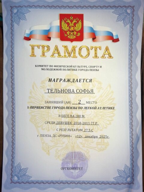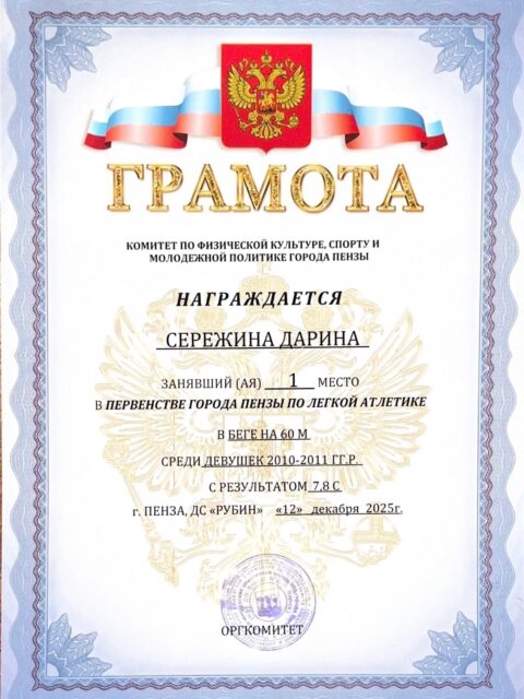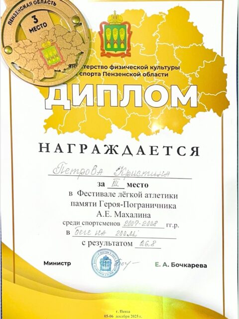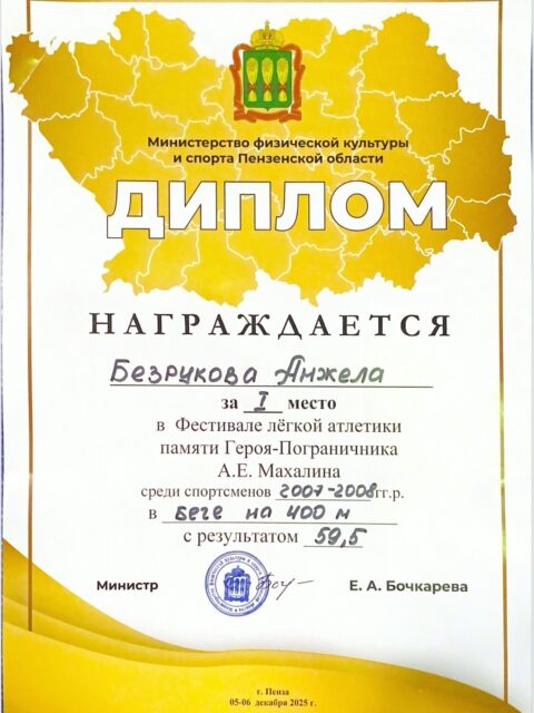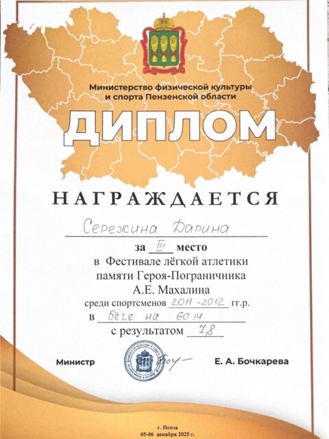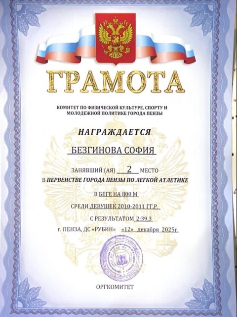 4 девочки и 1 мальчик вошли в состав сборной Пензенской области по легкой атлетике и выступали в составе сборной области на Всероссийских соревнованиях.