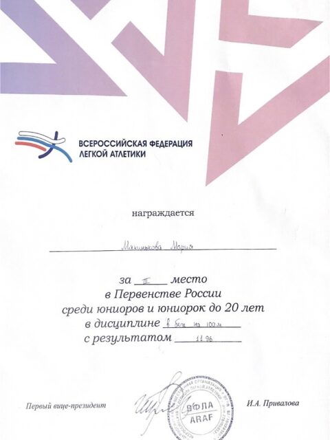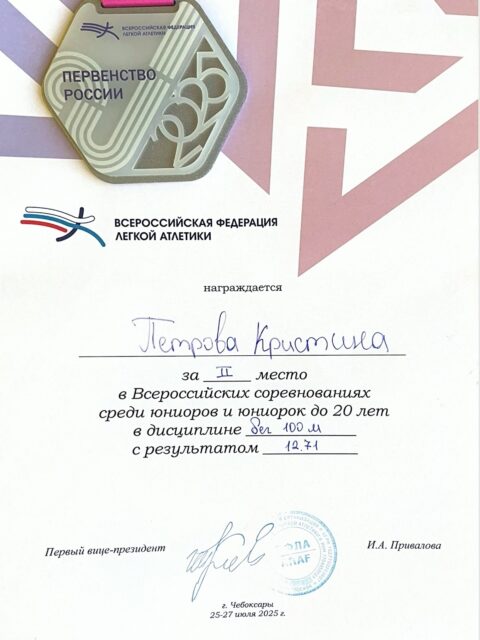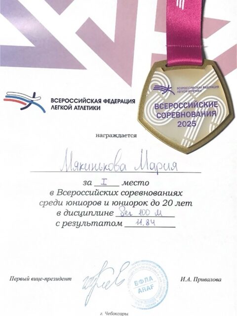 В марте 2024 года учащиеся объединения Макарова Ульяна и Сережина Дарина стали победительницами Всероссийских соревнований по легкой атлетике “Чемпионы для России” среди юношей и девушек до 14 лет.