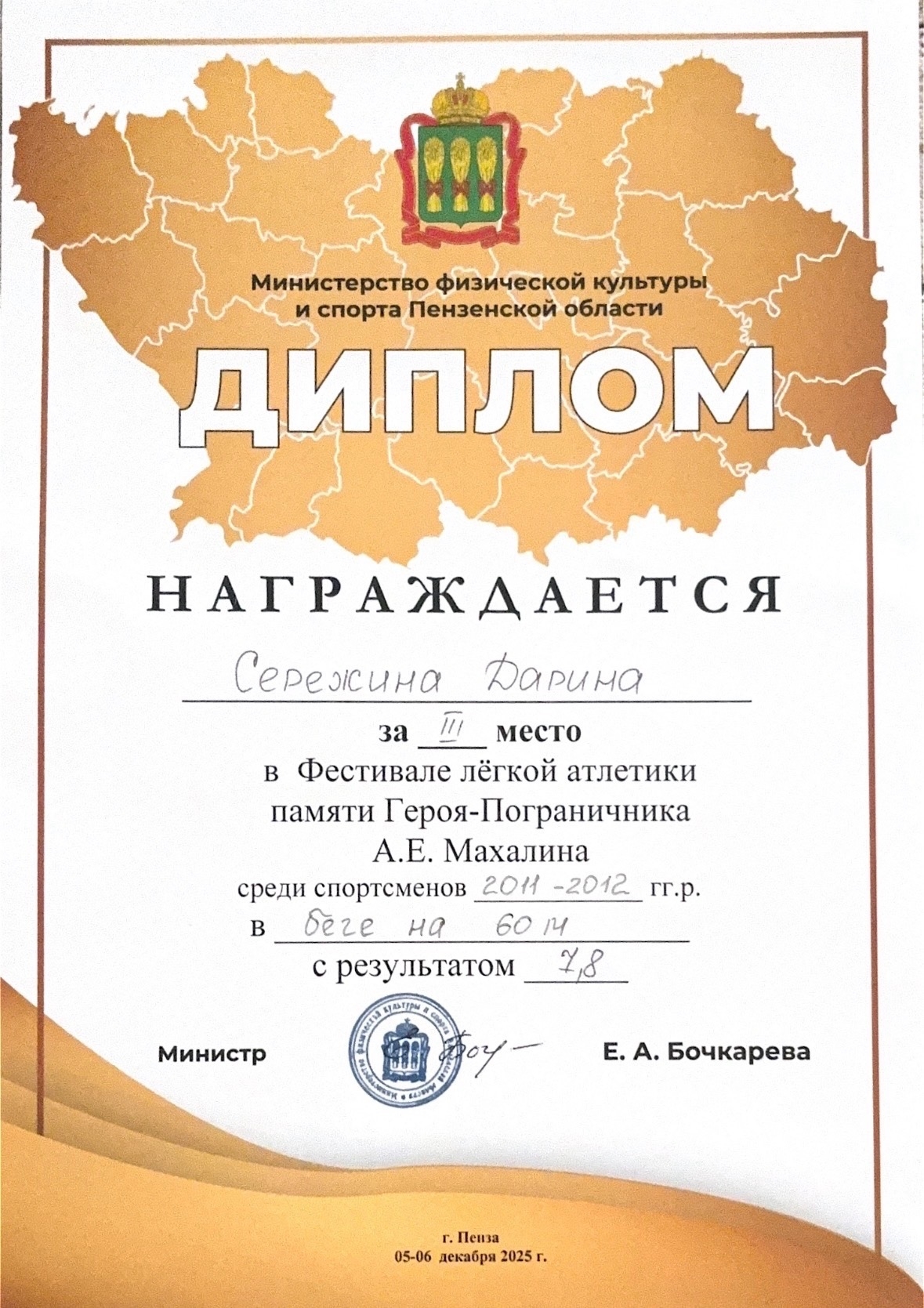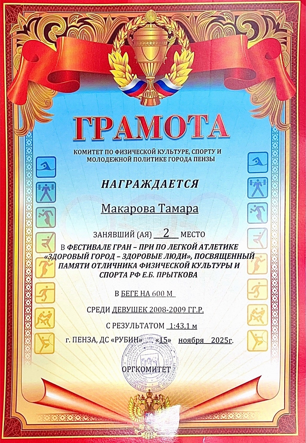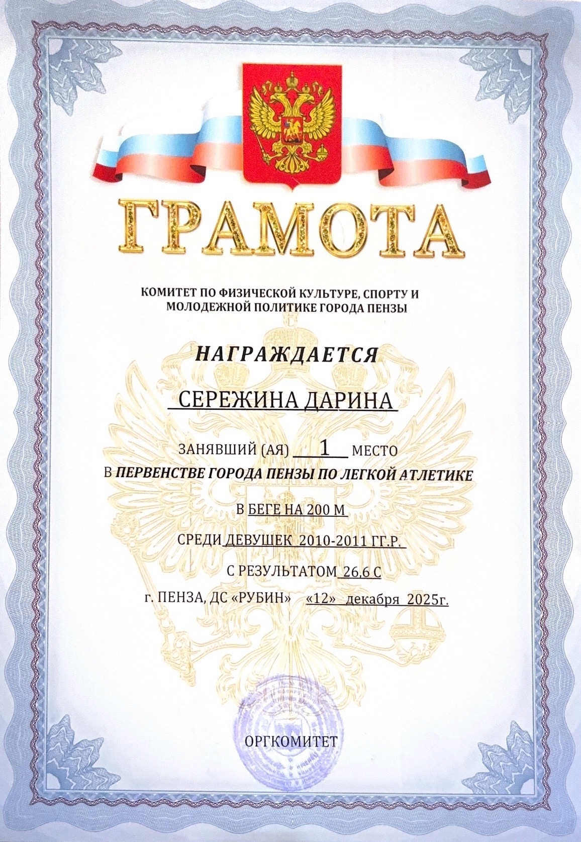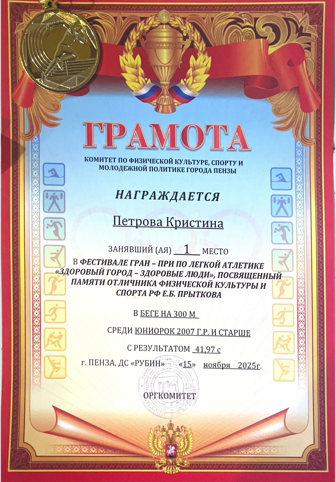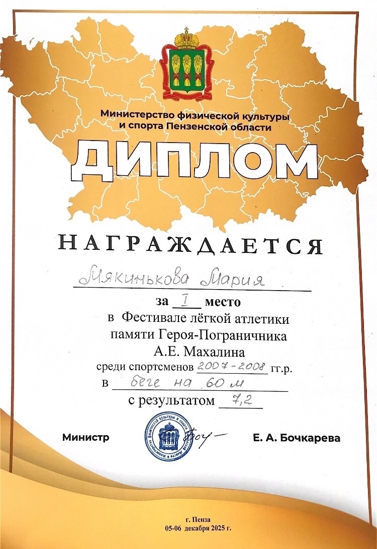 4 девочки и 1 мальчик вошли в состав сборной Пензенской области по легкой атлетике и выступали в составе сборной области на Всероссийских соревнованиях.
