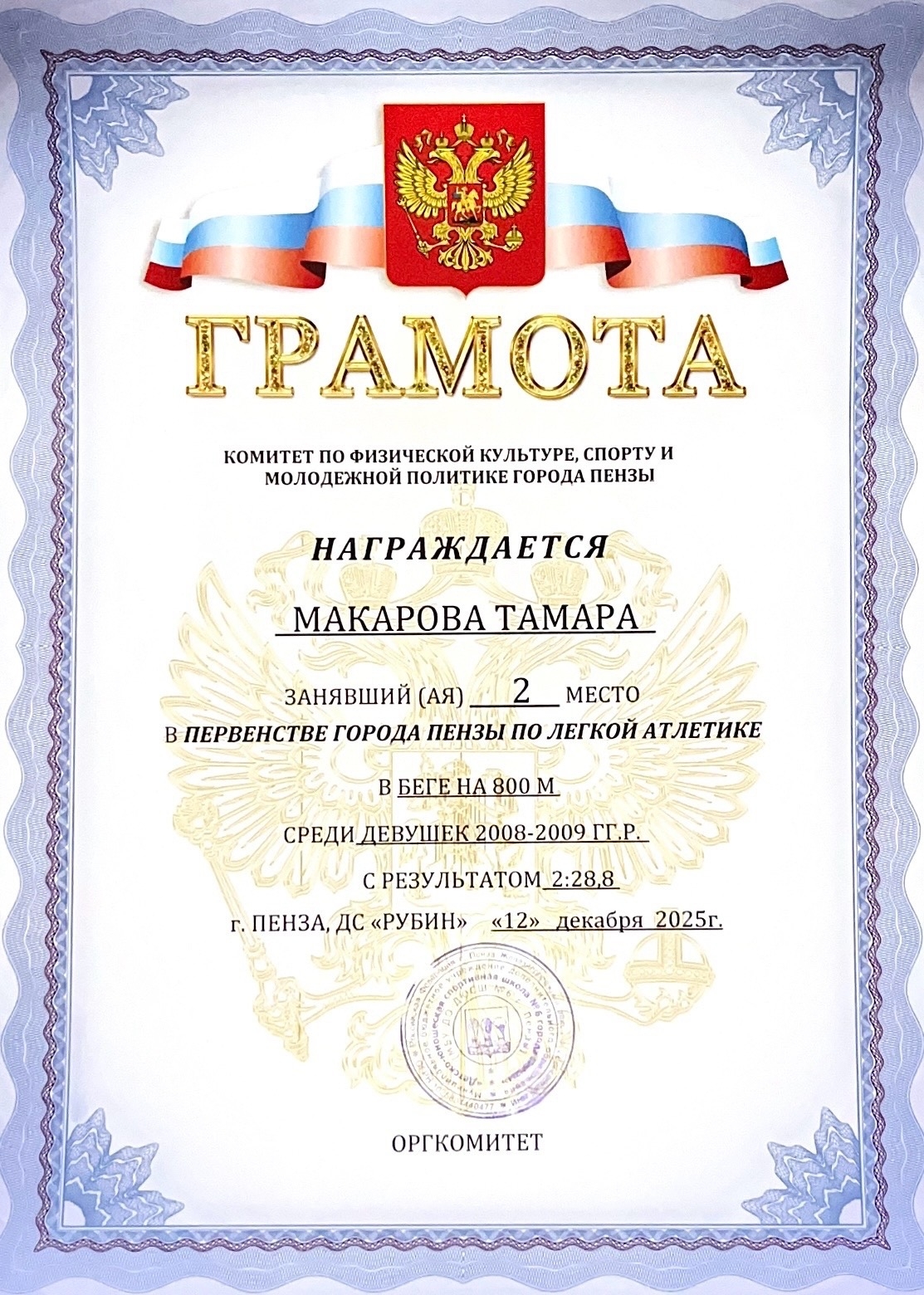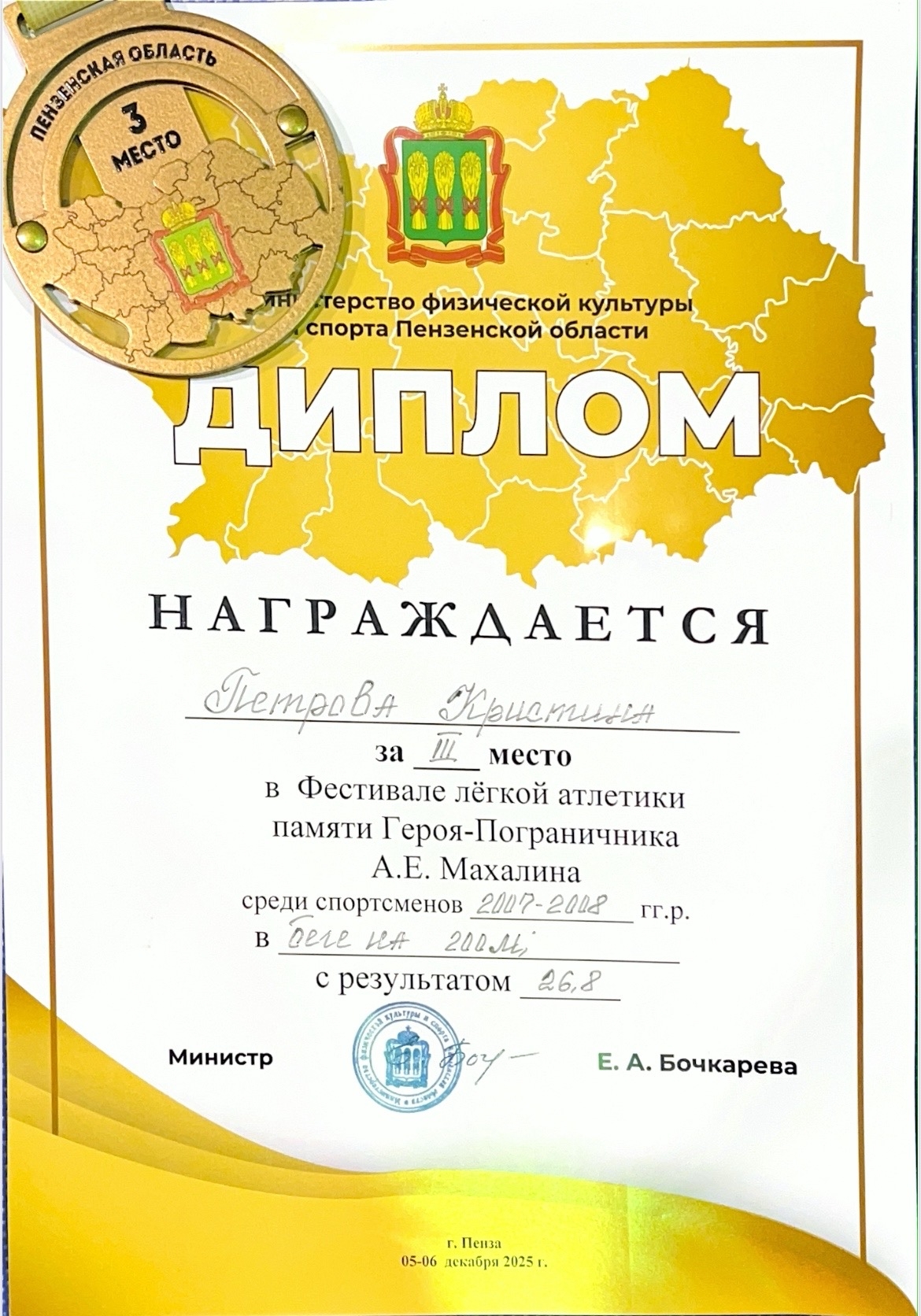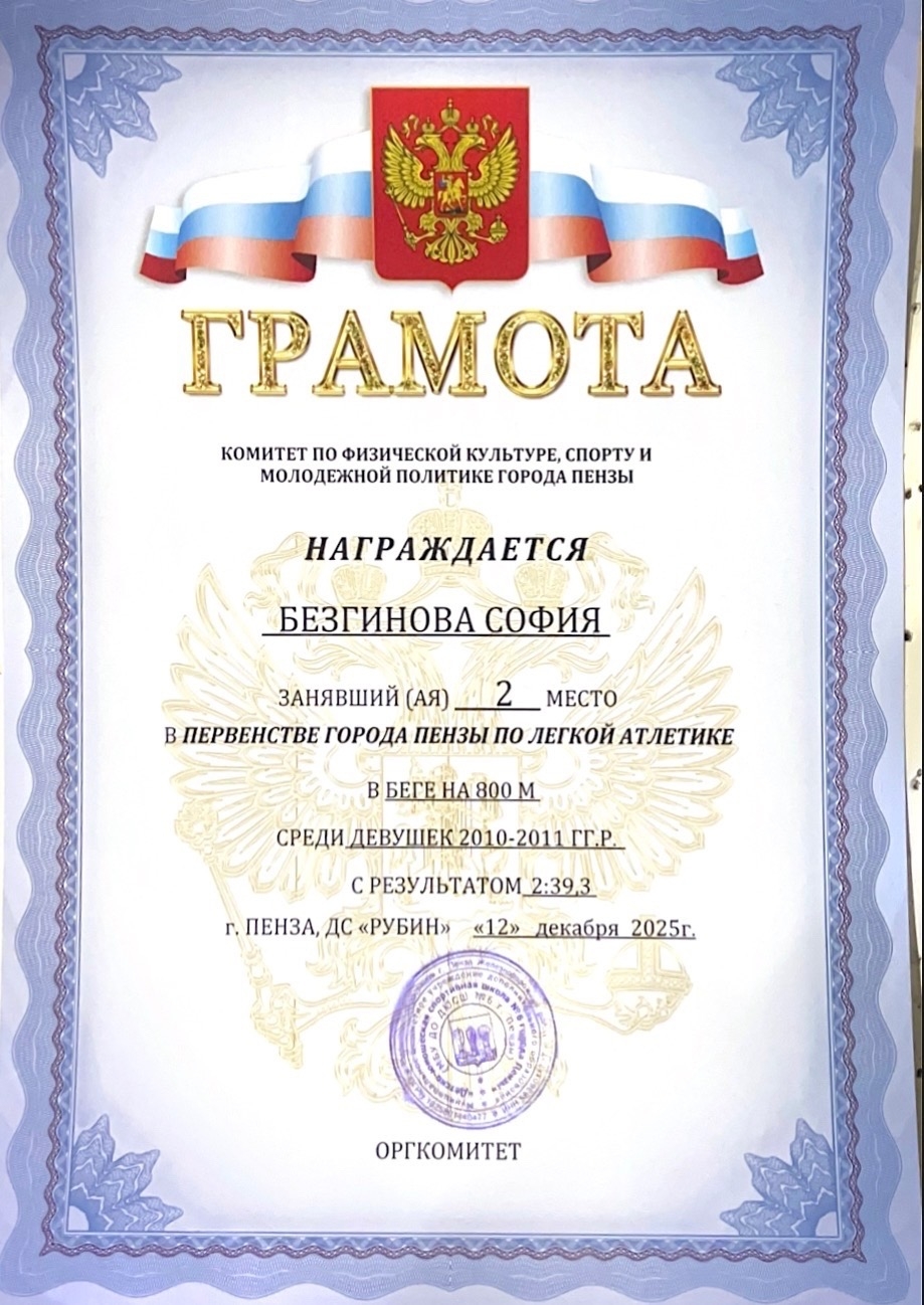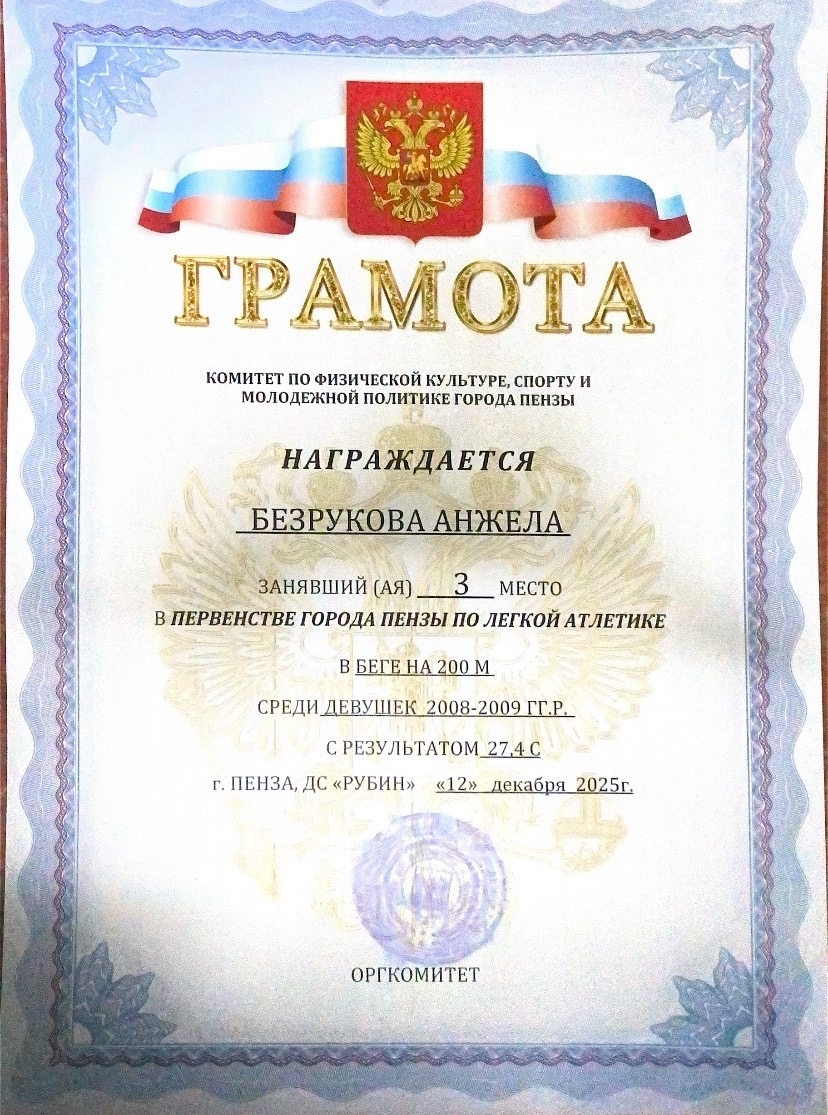 4 девочки и 1 мальчик вошли в состав сборной Пензенской области по легкой атлетике и выступали в составе сборной области на Всероссийских соревнованиях.