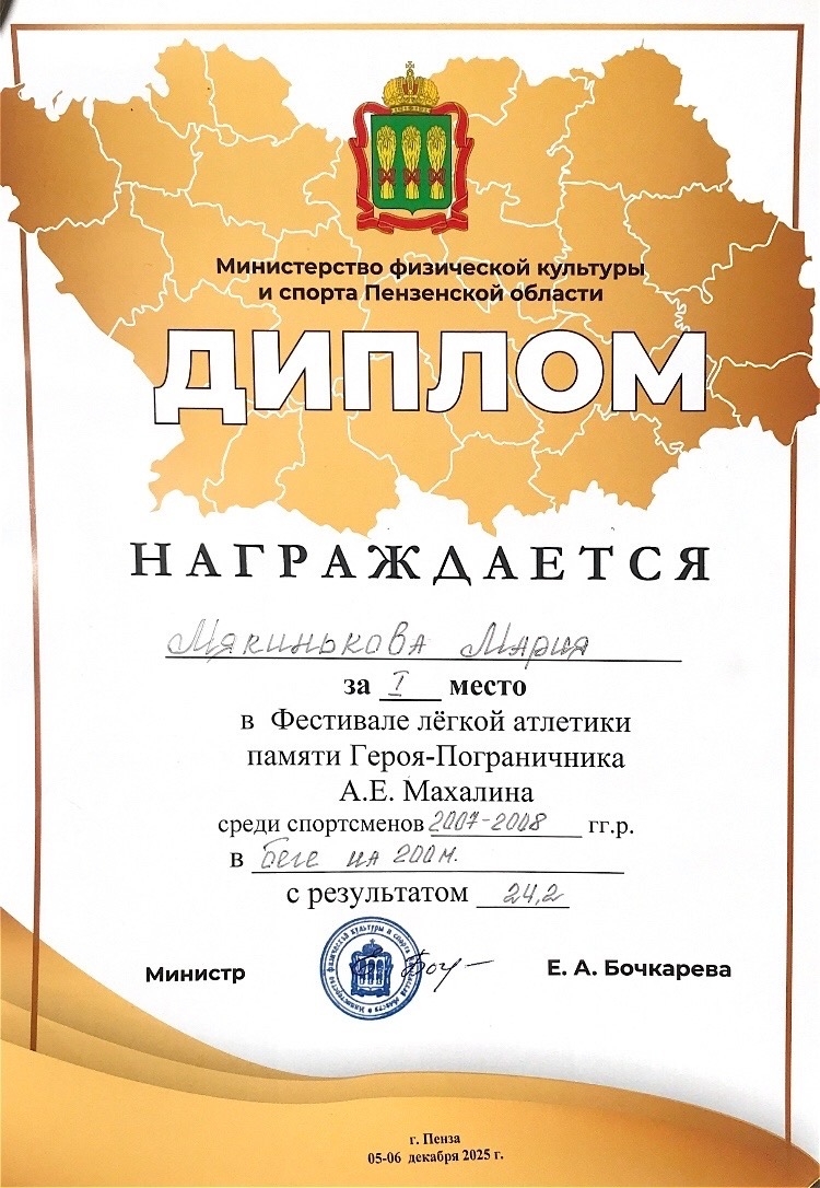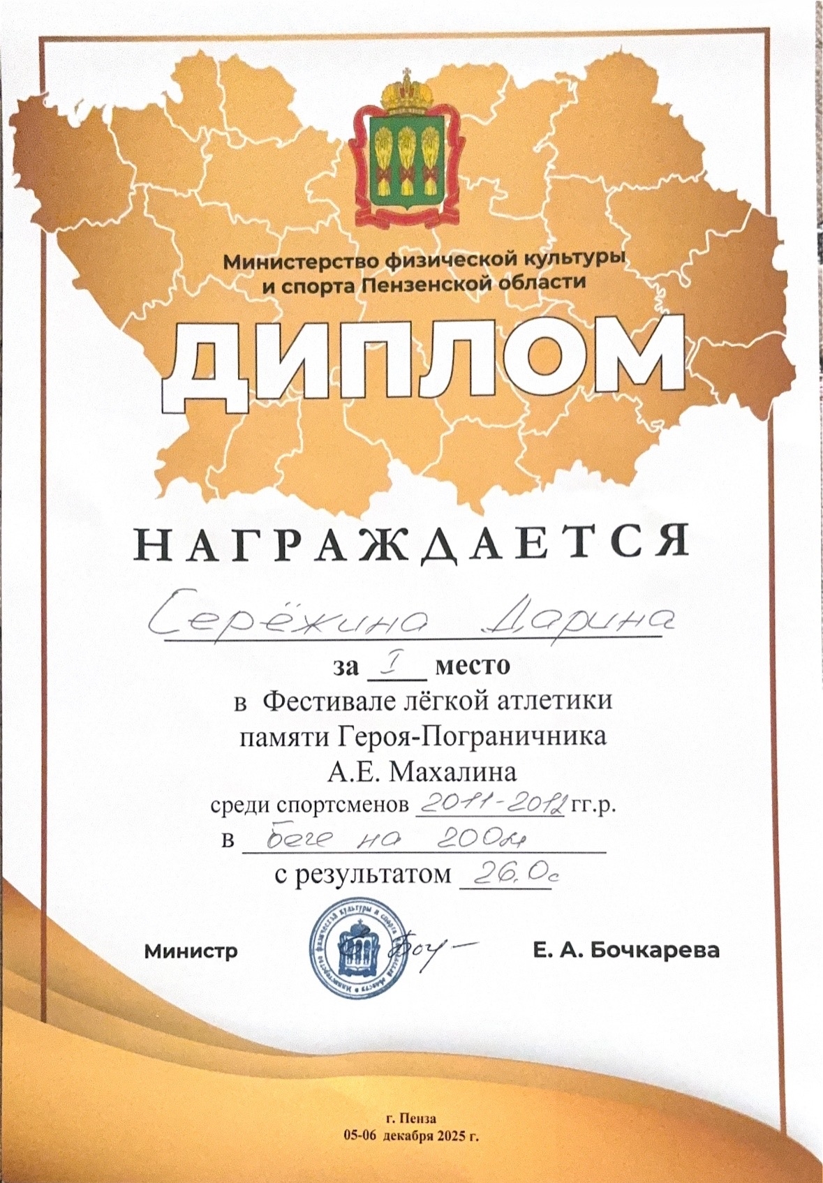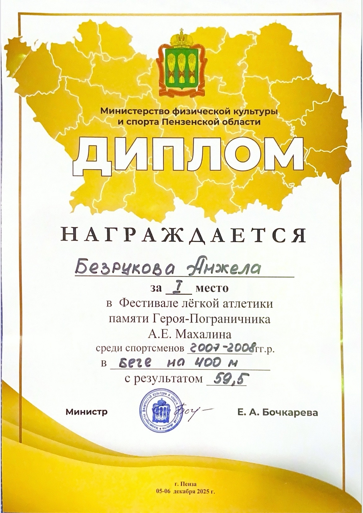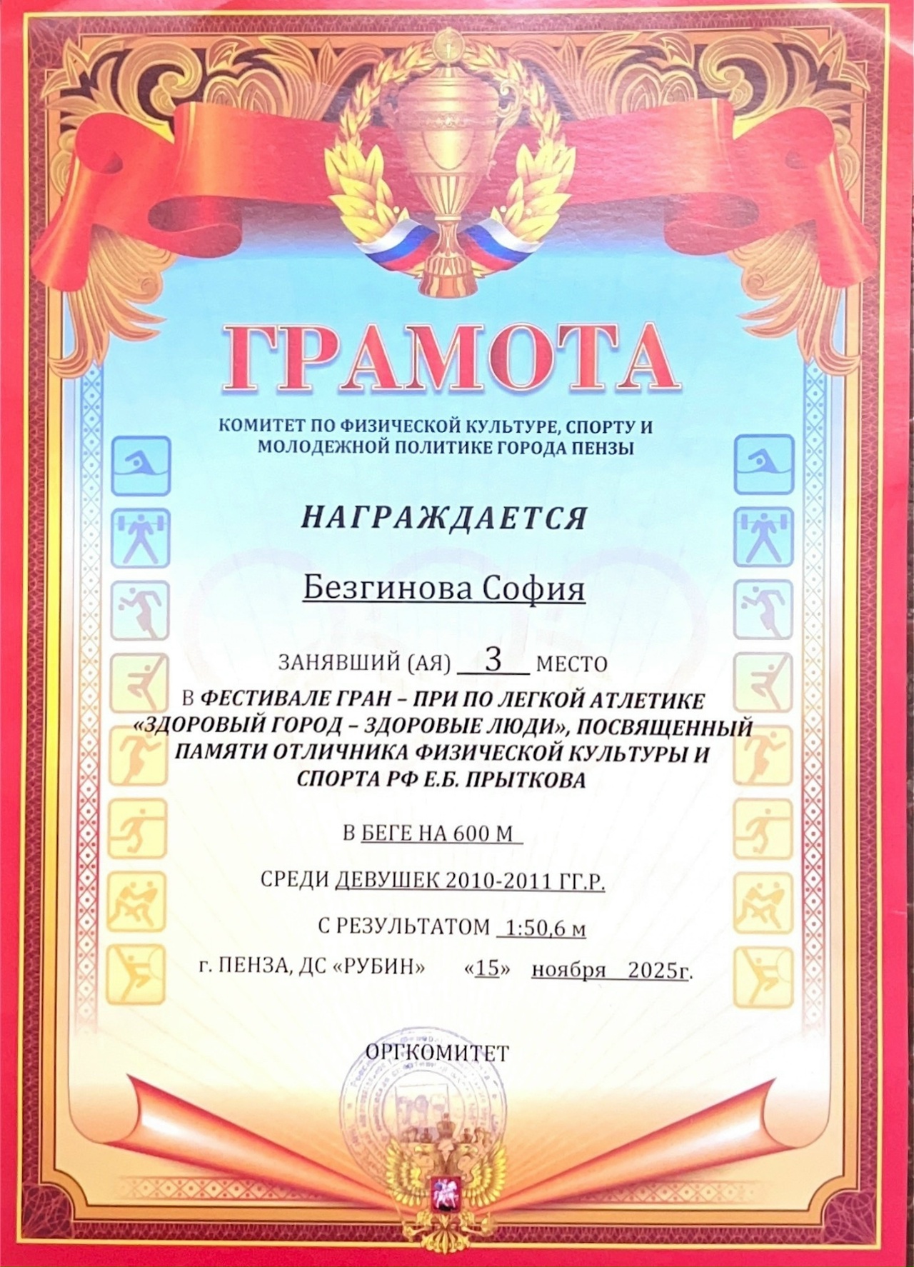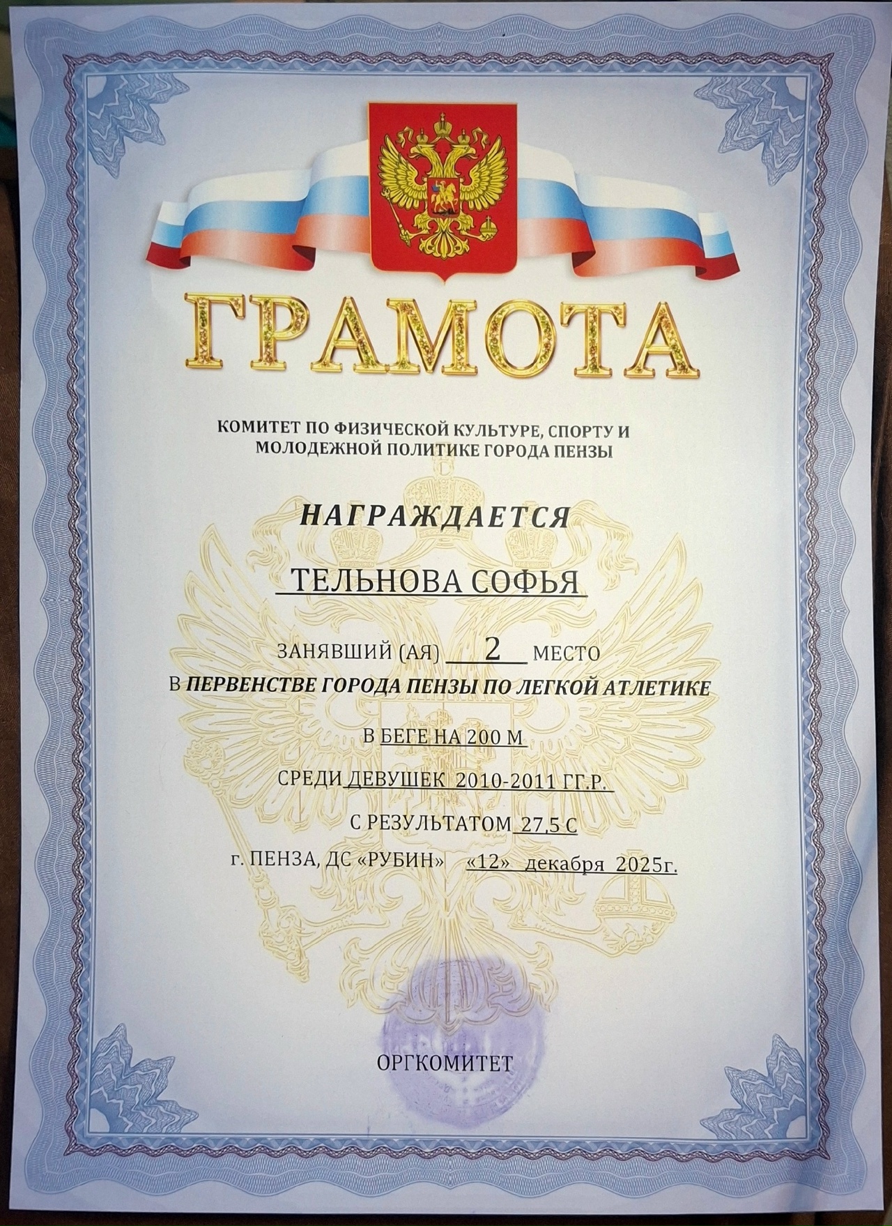 4 девочки и 1 мальчик вошли в состав сборной Пензенской области по легкой атлетике и выступали в составе сборной области на Всероссийских соревнованиях.