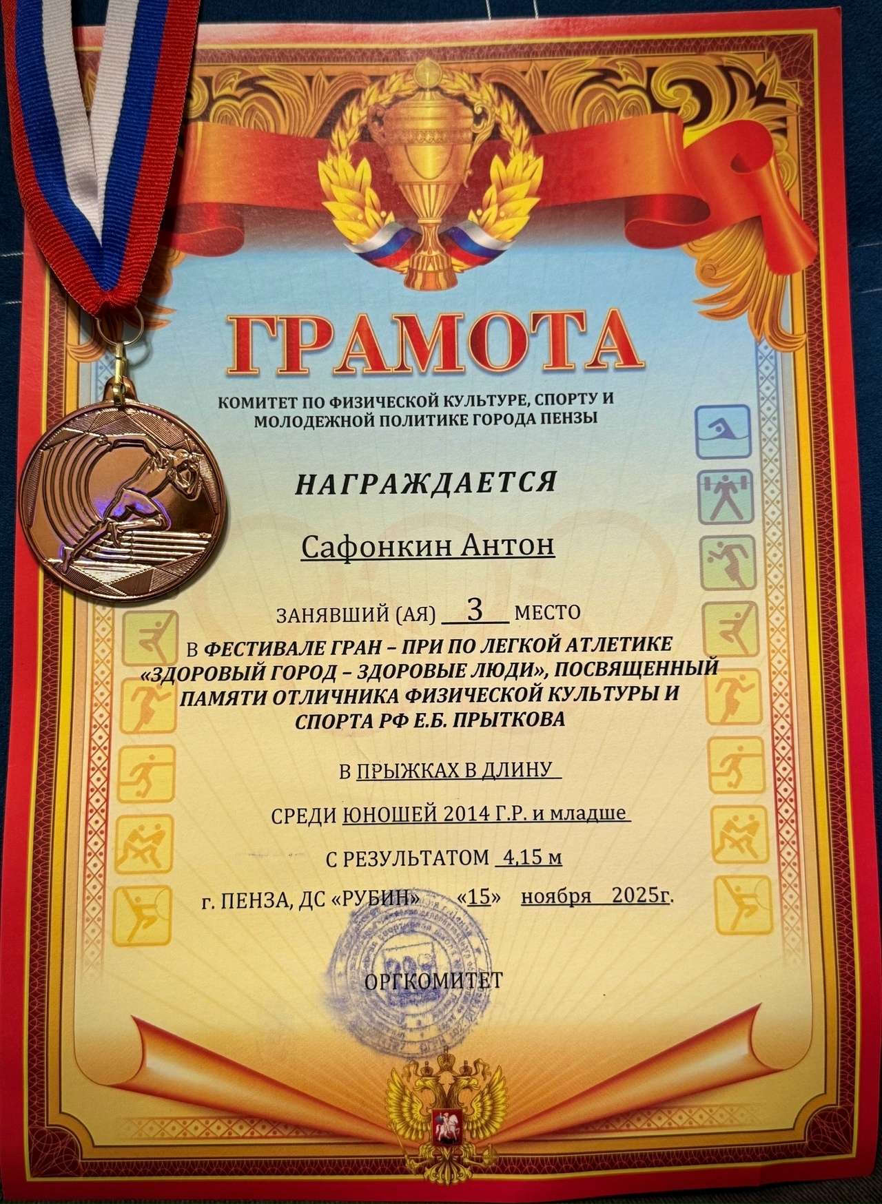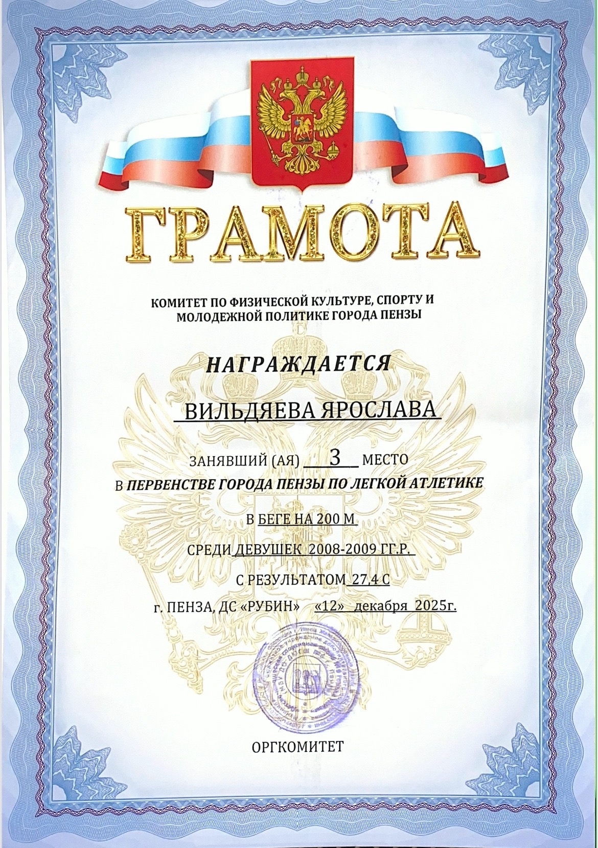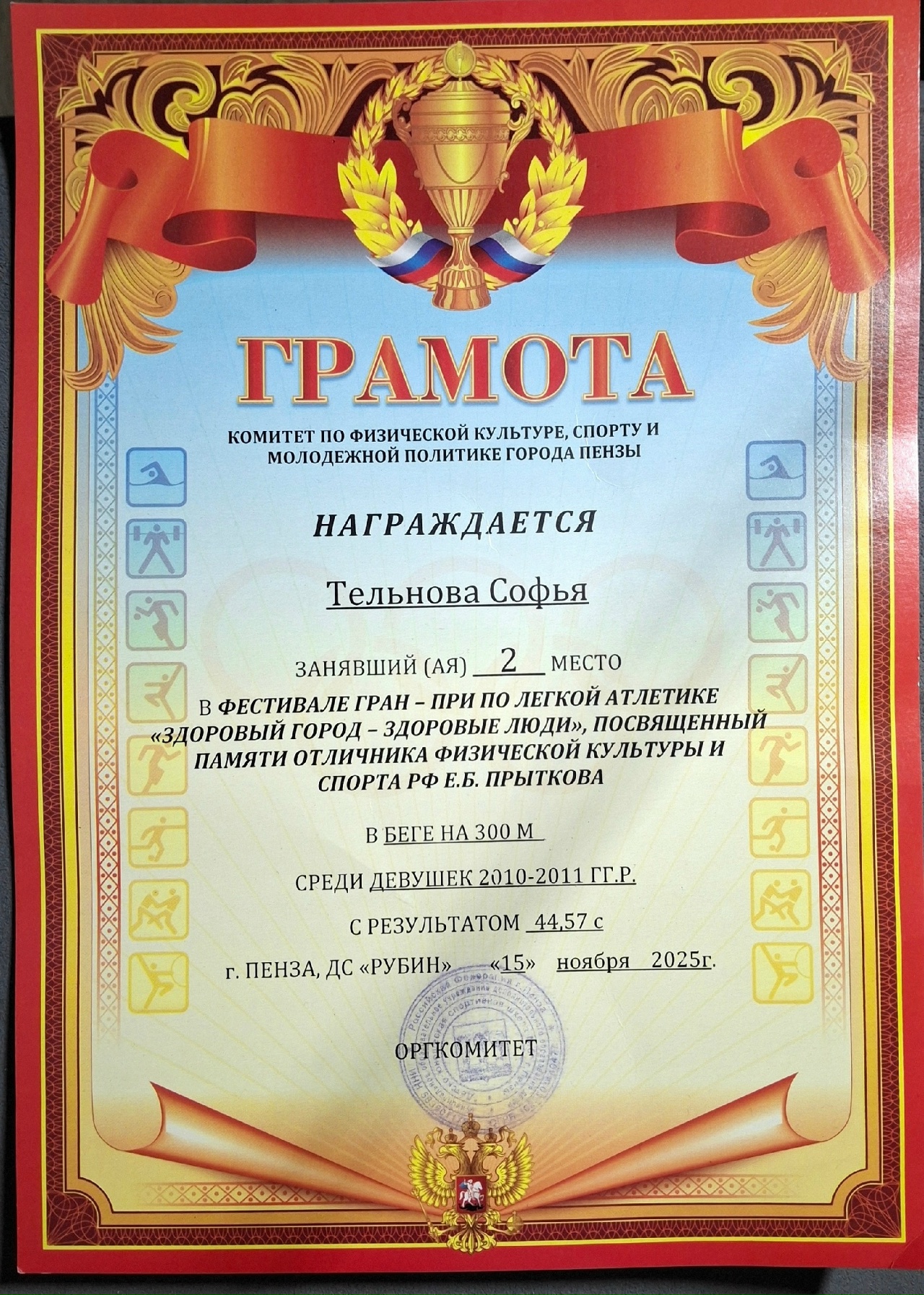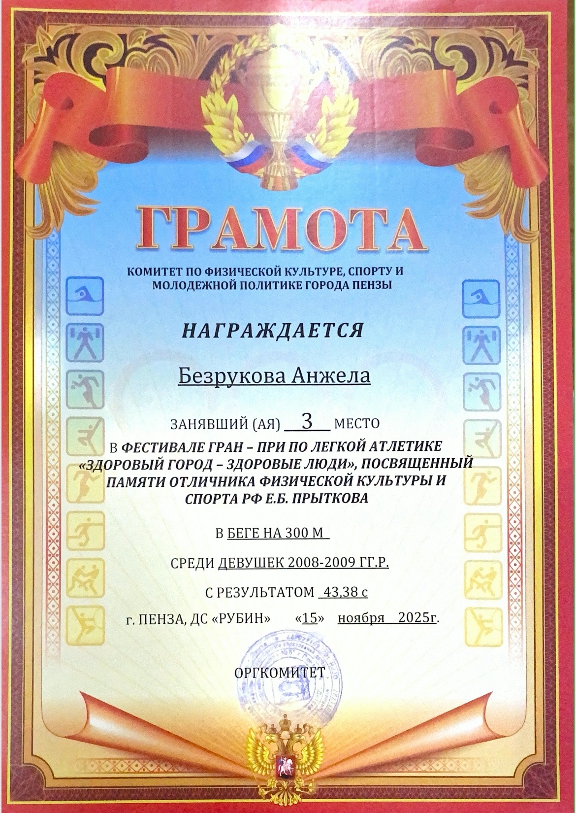 4 девочки и 1 мальчик вошли в состав сборной Пензенской области по легкой атлетике и выступали в составе сборной области на Всероссийских соревнованиях.