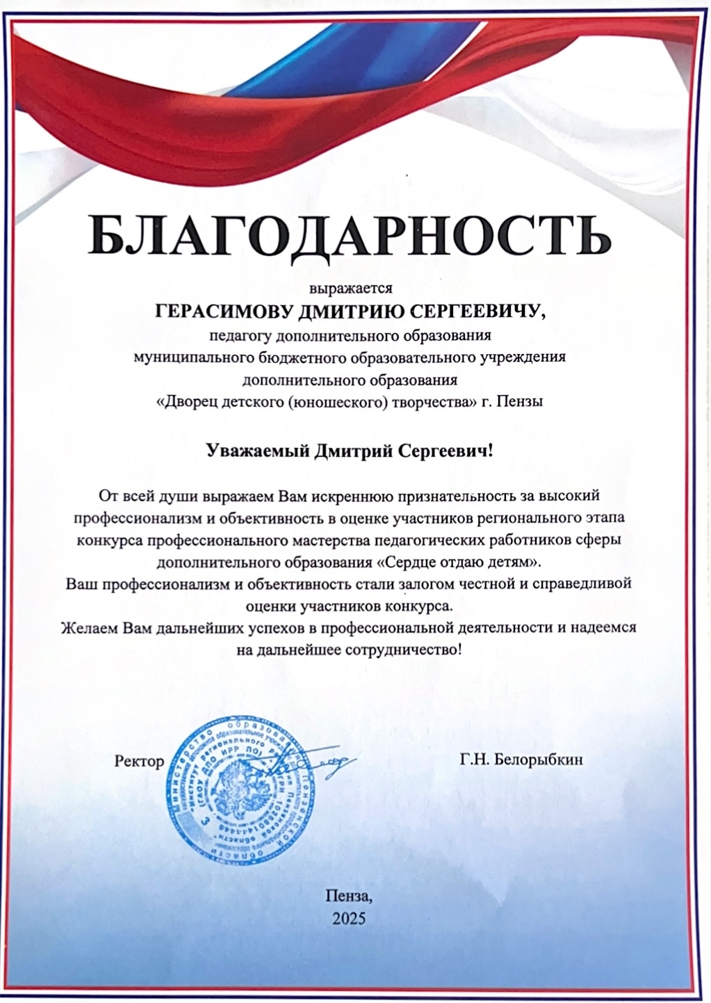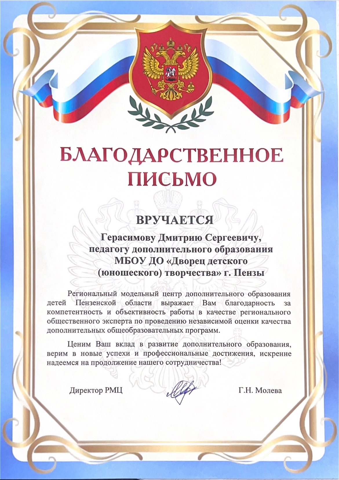 Учащаяся объединения Кристина Петрова была удостоена грамотой за высокие достижения в ДД(Ю)Т г. Пенза.