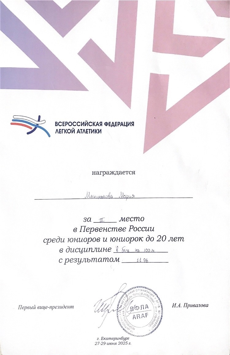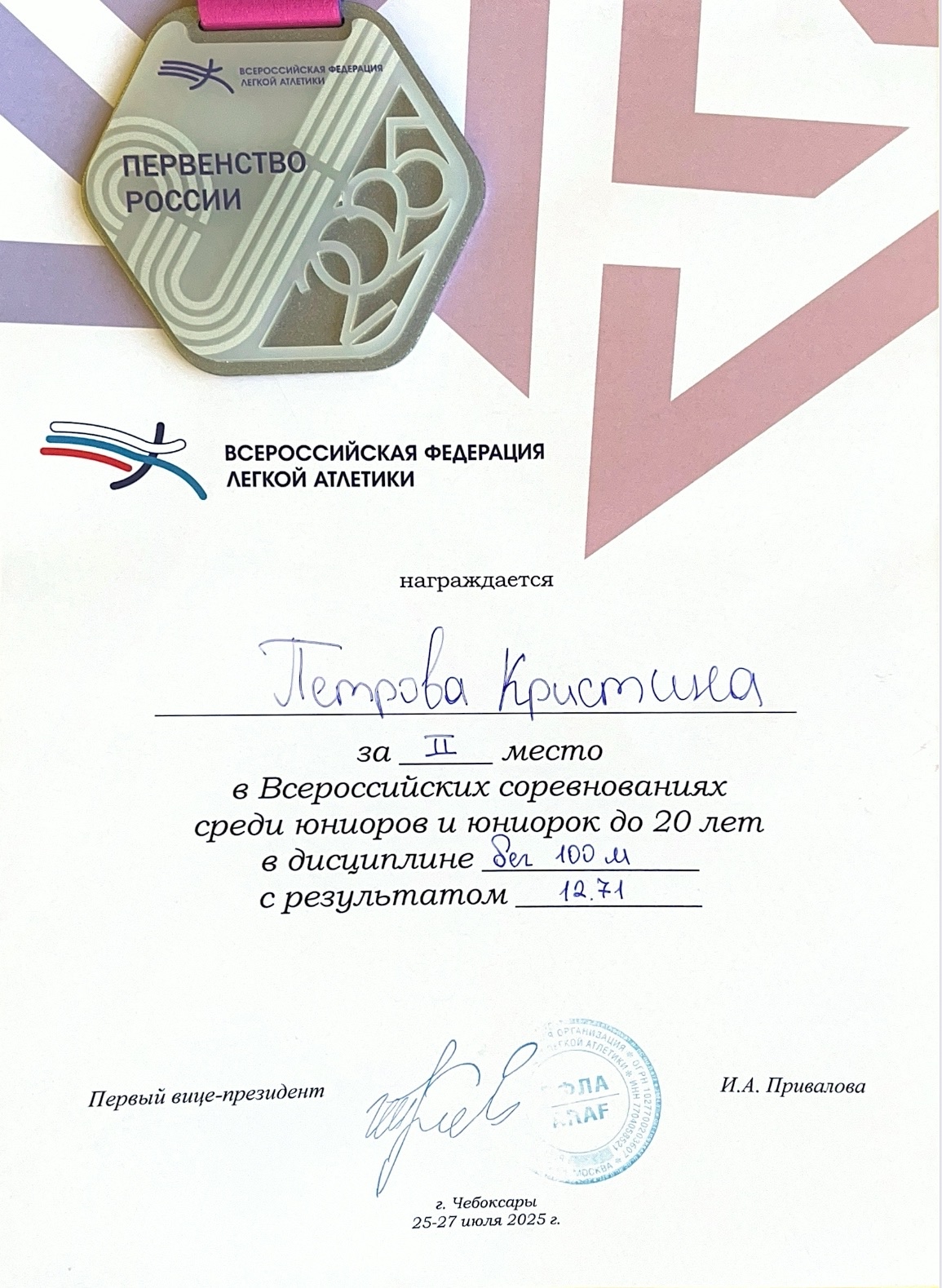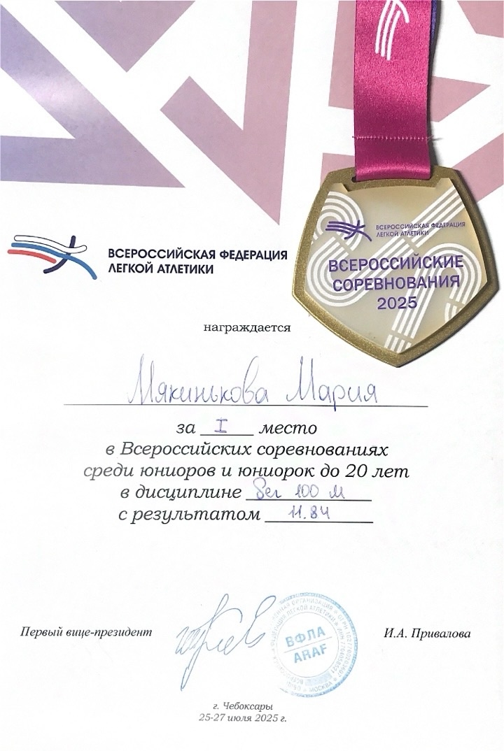В марте 2024 года учащиеся объединения Макарова Ульяна и Сережина Дарина стали победительницами Всероссийских соревнований по легкой атлетике “Чемпионы для России” среди юношей и девушек до 14 лет.