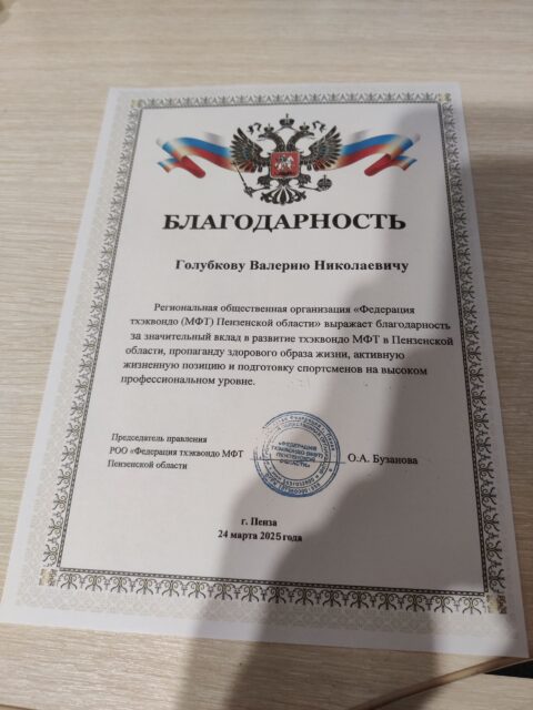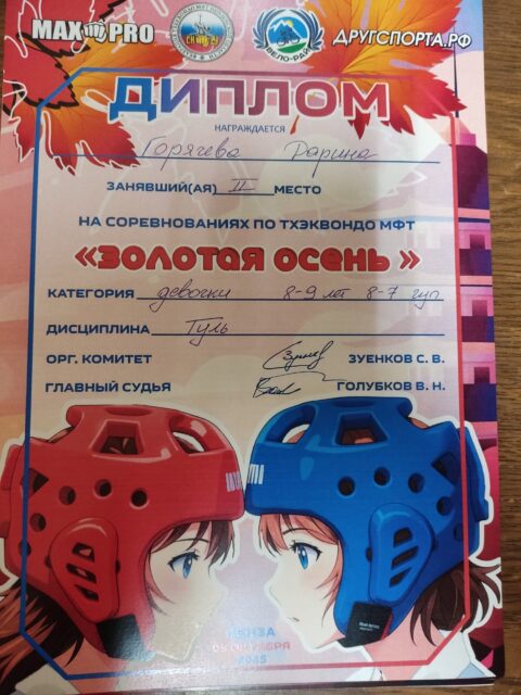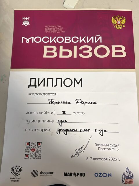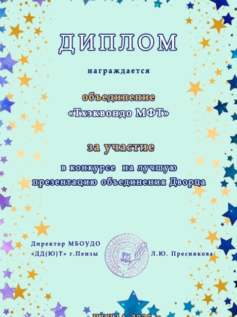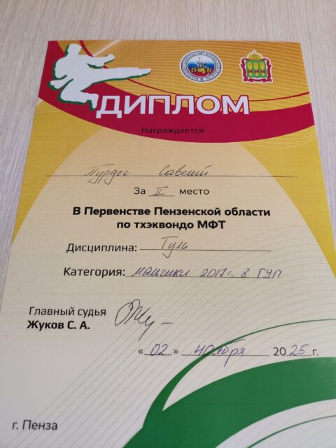 — Черный пояс II Дан Тхэквондо МФТ;