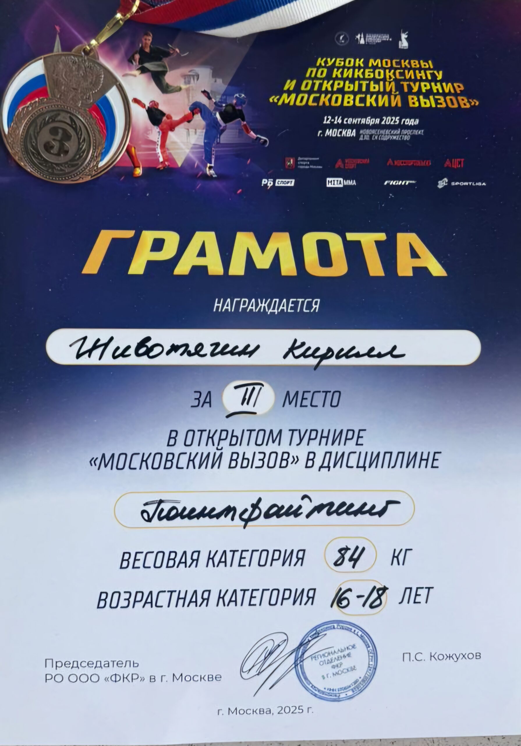 Информация о результативности участия педагога в профессиональных конкурсах, имеющих официальный статус (указываются название конкурса, дата проведения, результат участия, прикрепляется скан диплома). Кроме коммерческих интернет конкурсов.