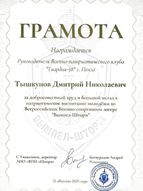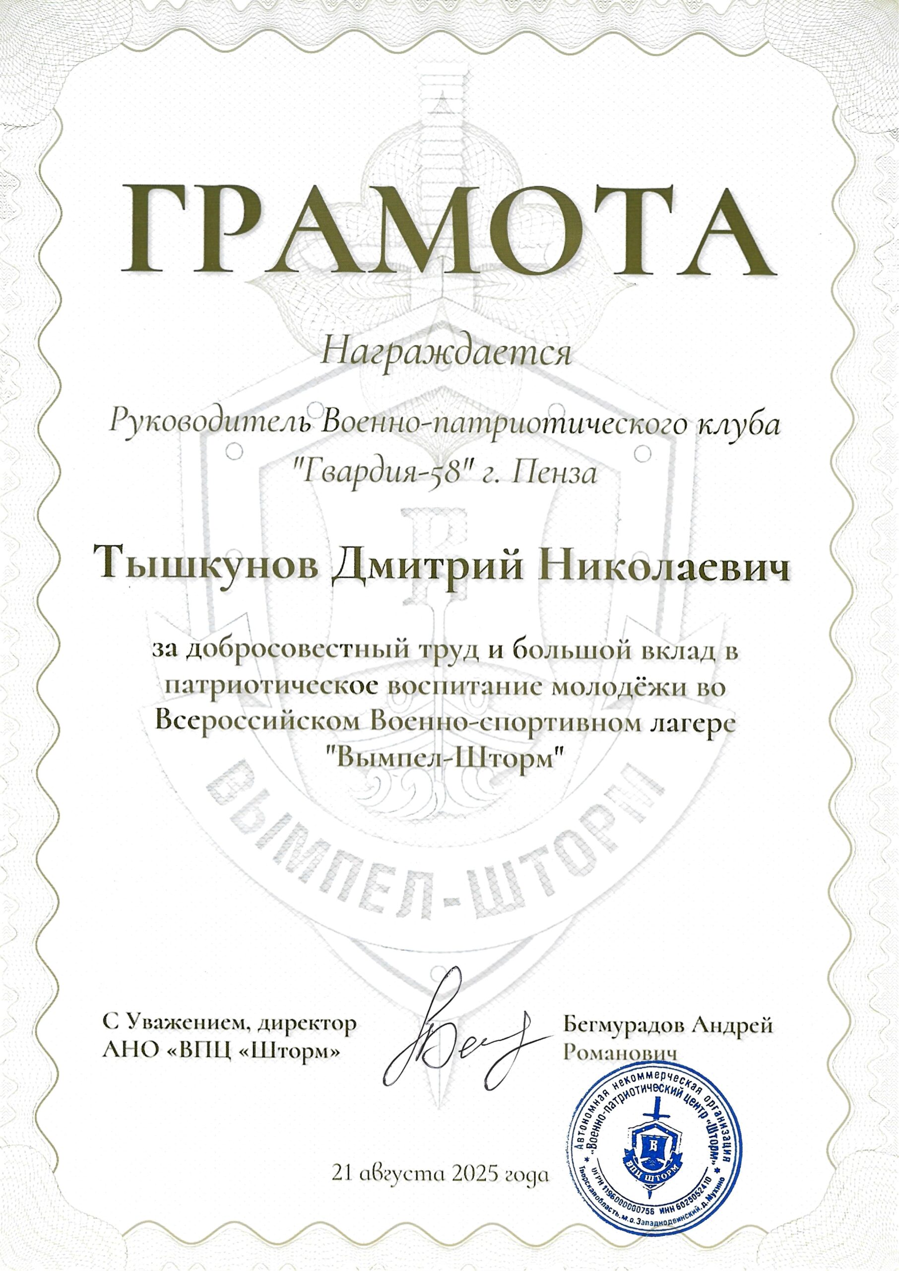 С января 2021 года — руководитель филиала ВПК «Гвардия» в МБОУ СОШ №58