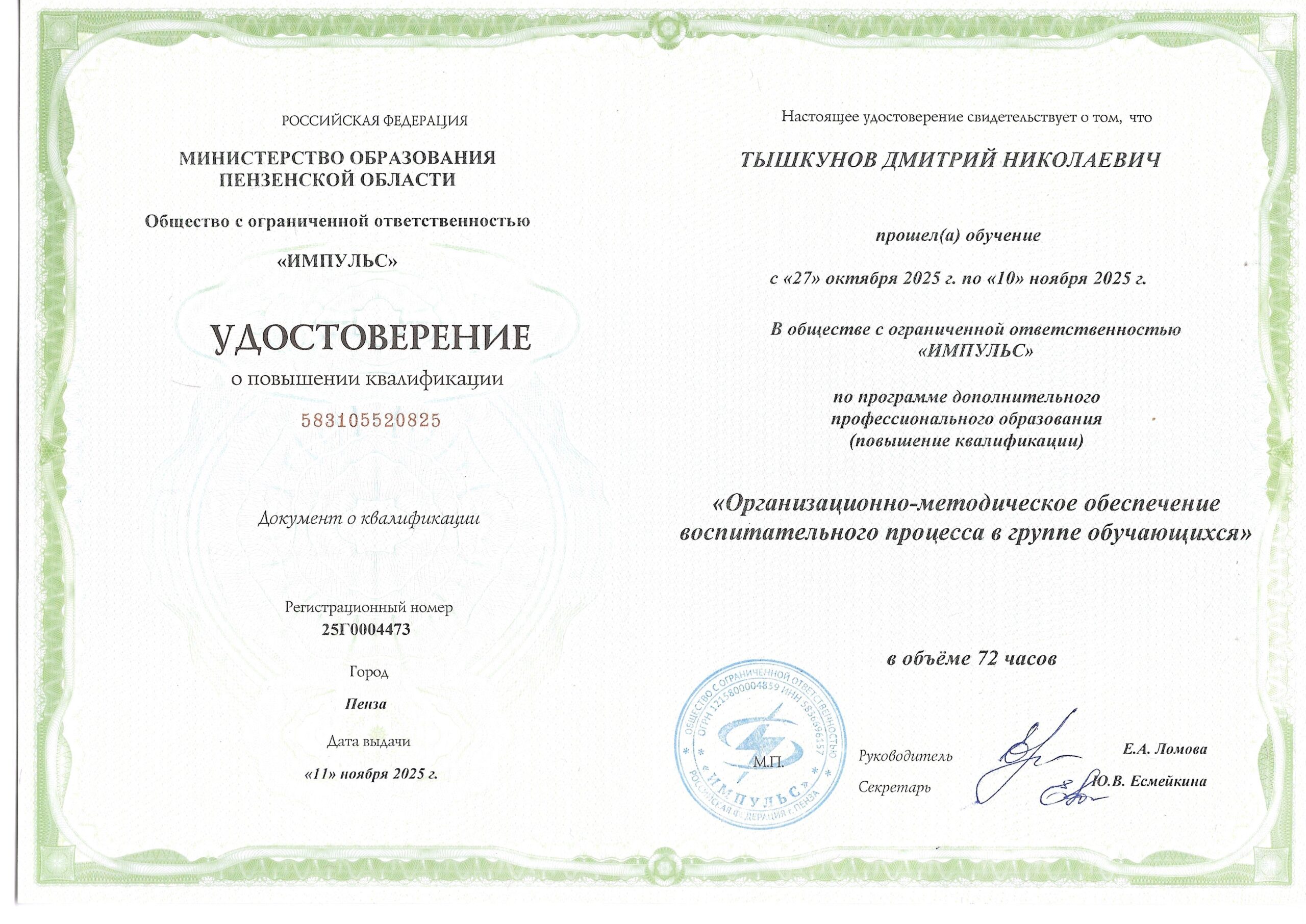 Информация о прохождении курсов повышения квалификации, участии в обучающих семинарах и мастер-классах (прикрепляется скан удостоверения, свидетельства, сертификат участника).